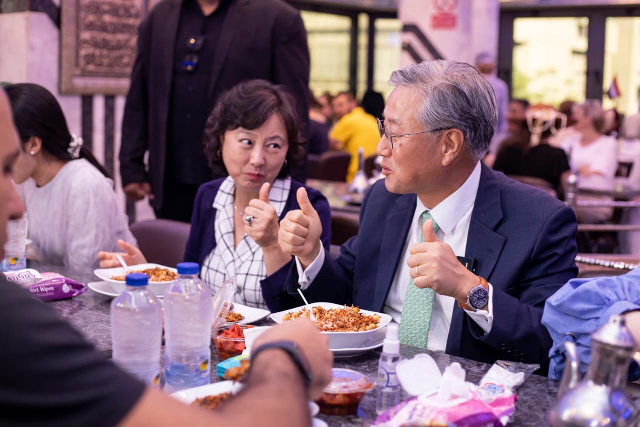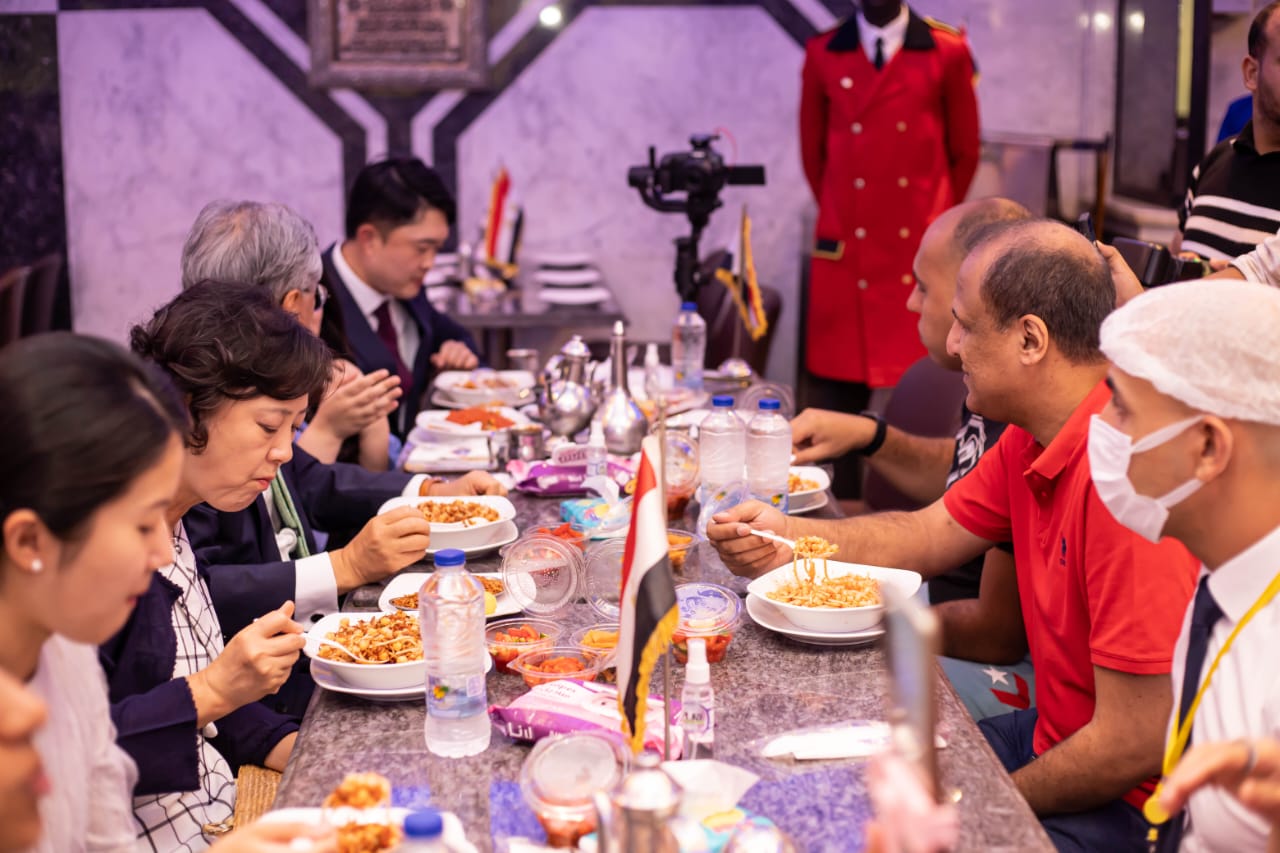 ومن جانبها قالت مترجمة سفارة كوريا الجنوبية في مصر ؛ إن السفير وحرمه أصرا على التواجد بمنطقة وسط البلد وأكل وجبة الكشري الأشهر في مصر ، وذلك في إطار دعم تبادل التراث الثقافي بين مصر وكوريا الجنوبية .