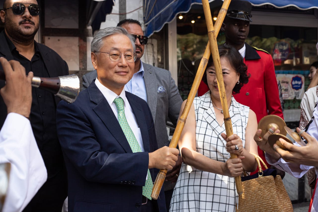 ومن جهته وجه سفير كوريا الجنوبية الشكر للشعب المصري على حسن وحفاوة استقباله بمنطقة وسط البلد ، وقال مازحا “كانوا بيوسعولي الطريق وقالولي انت ضيفنا وحقكك اننا نسهل عليك الحركة رغم زحام وسط القاهرة .