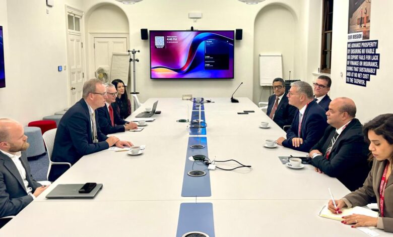 وتناول اللقاء فرص التعاون بين الجانبين في ضوء ما تقدمه الهيئة البريطانية لتمويل الصادرات من خدمات وتسهيلات لدعم تمويل المشروعات بمختلف أنحاء العالم. ومن جانبه استعرض الرئيس التنفيذي لهيئة تمويل الصادرات المشروعات التي تم تنفيذها من خلال الهيئة بمنطقة الشرق الأوسط والذي يعكس قدرة الهيئة على إطلاق مصادر جديدة ومرنة للتمويل التجاري من أجل تنفيذ مشاريع رائدة في مختلف أنحاء العالم.