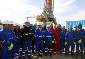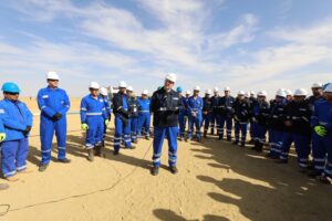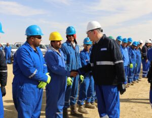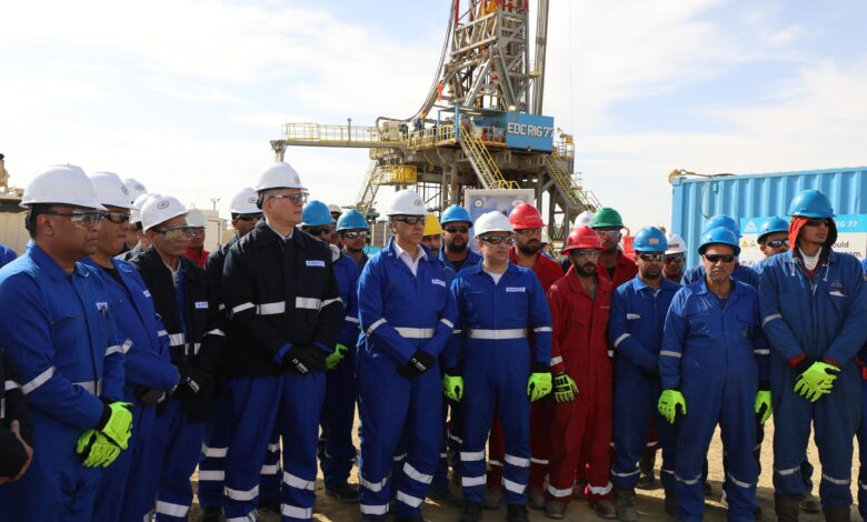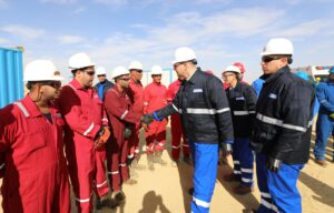 ثم قام المهندس كريم بدوى ومرافقوه بمتابعة اعمال الحفار EDC-77 التابع لشركة الحفر المصرية والذي يقوم حالياً بحفر بئر تنموية جديدة بمنطقة بدر 16 ، وادار المهندس كريم بدوى حوارا مع فريق عمل الحفار ، تابع خلاله سير العمل في اعمال الحفر والوقوف علي الالتزام بتطبيق إجراءات السلامة والصحة المهنية، كونها قيمة اساسية للحفاظ علي العاملين ، مؤكداً على اهمية العمل التكاملى والعمل بروح الفريق الواحد لزيادة معدلات الإنتاج ، موجهاً الشكر لهم على جهودهم المبذولة على مدار ال 24 ساعة ، وطالبهم بنقل التحية والشكر لباقي زملائهم فى ورديات العمل الأخرى ، وحثهم على الاستمرار في بذل المزيد من الجهد للتغلب على التحديات وتعظيم الإنتاج لدعم الاقتصاد القومى.