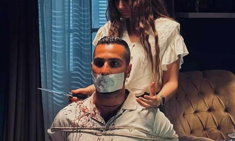 ونشرت هنا الزاهد الصورة عبر حسابها الرسمي بموقع التواصل الاجتماعى «انستجرام»، وظهر فيها «الشرنوبي» جالسا على كرسي مقيدا ، وظهرت هنا وبيدها سكينا وتحاول قتله.