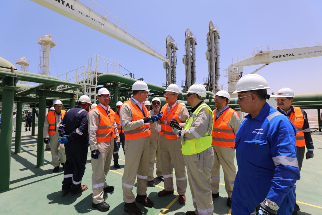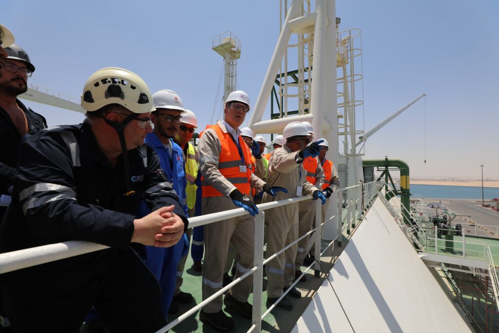 وزير البترول يتفقد موقع استقبال سفينة التغييز الثالثة بميناء العين السخنة يرافقه عدد من قيادات التنفيذية بقطاع البترول