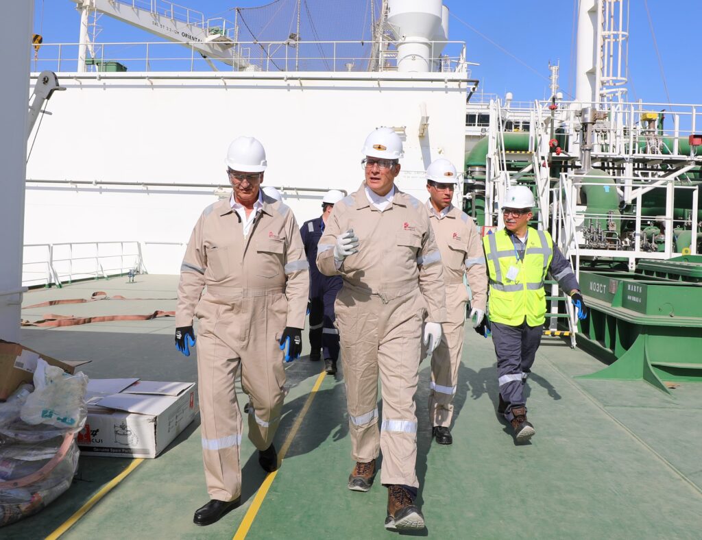 في إطار حرص الدولة المصرية على تعزيز أمن الطاقة وضمان استدامة واستقرار إمدادات الغاز الطبيعي للسوق المحلية، وفى ضوء المتابعة المستمرة لاعمال التجهيزات والتعديلات الفنية اللازمة لسفن تغييز الغاز لدخولها الخدمة وفقاً للبرامج الزمنية المخططة ، قام المهندس كريم بدوي، وزير البترول والثروة المعدنية، بجولة تفقدية لمتابعة المراحل النهائية لاعمال تجهيز وتعديل سفينة التغييز “Energos Eskimo” بميناء العين السخنة، إيذانا لنقلها وربطها على رصيف ميناء سوميد بالسخنة لاستقبال شحنات الغاز المسال المستورد لإعادة تغييزه وضخه فى الشبكة القومية للغاز.