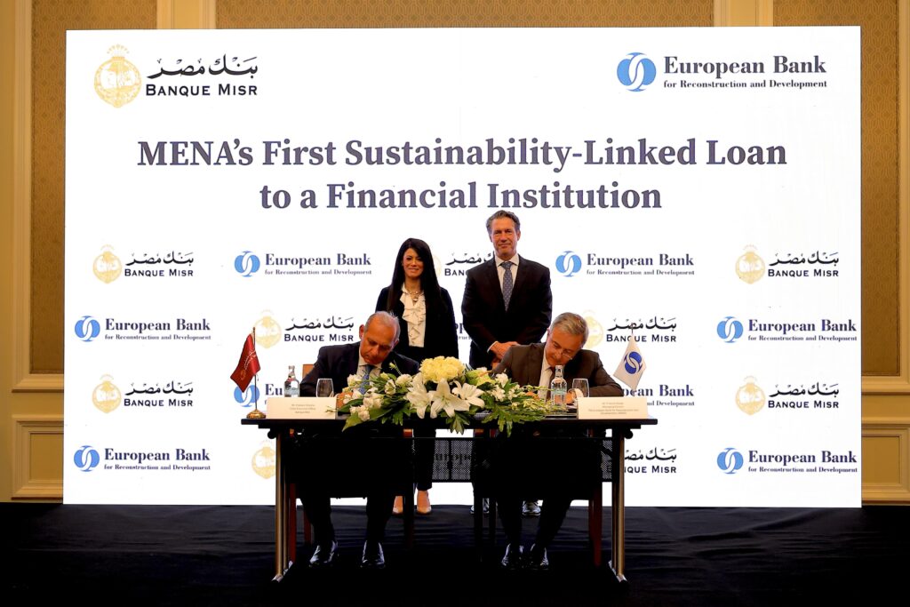 شهدت الدكتورة رانيا المشاط وزيرة التخطيط والتنمية الاقتصادية والتعاون الدولي، قيام بنك مصر بالتوقيع على أول قرض من نوعه في منطقة الشرق الأوسط وشمال إفريقيا مرتبط بالاستدامة لمؤسسة مالية، وذلك بقرض تمويلي قدره 100 مليون دولار أمريكي، مقدم بالكامل من البنك الأوروبي لإعادة الإعمار والتنمية، وبمشاركة بنك أبو ظبي الأول كمستشار بيئي ومستشار الاستدامة للصفقة، ويأتي ذلك في إطار جهود بنك مصر المستمرة لتعزيز التنمية المستدامة في مصر، واتساقًا مع رؤية الدولة نحو اقتصاد شامل وأخضر، وقد تم التوقيع يوم الأربعاء الموافق 9 يوليو 2025، و قام بالتوقيع عن بنك مصر الأستاذ/ هشام عكاشه – الرئيس التنفيذي، والأستاذ / فرانسيس ماليج، المدير العام ورئيس مجموعة مؤسسات التمويل في البنك الأوروبي لإعادة الإعمار والتنمية، وذلك بحضور قيادات المؤسستين .