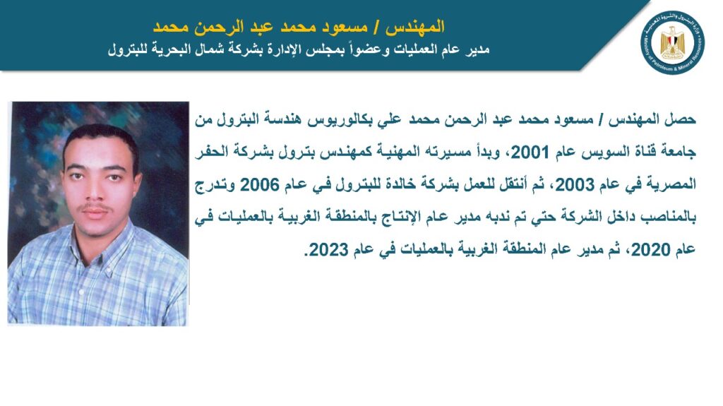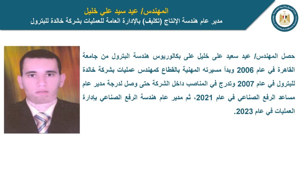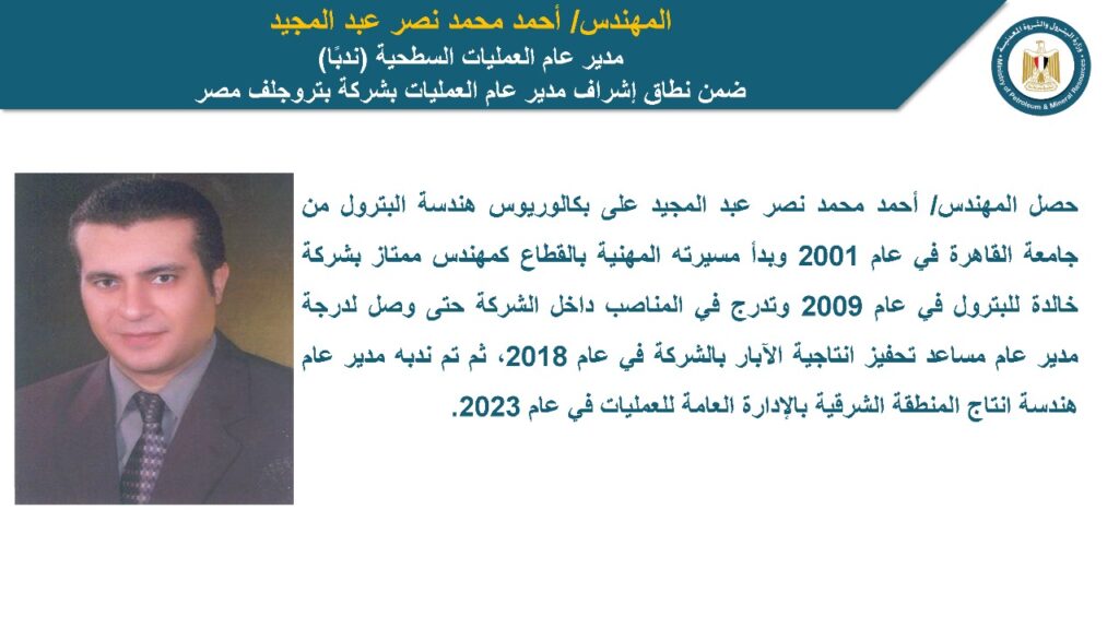 والحديث عن أحمد عبد المجيد، مدير عام العمليات بـ”بتروجلف”، وابن شركة “خالدة”، ومتخصص في الاستكشاف السطحي، وقادر على التميز فيه.