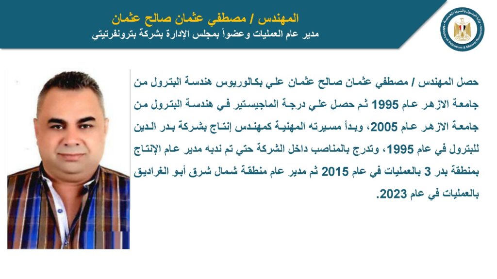 وأعود لمصطفى عثمان، مدير العمليات لشركة “بترونفرتيتي”، وذهب لأحد أبناء “بدر الدين”، ورئيس الشركة أحمد مصطفى الخلوق، وهنا يتجمع أبناء “بدر الدين”، و”السي في” الخاص بمصطفى يؤكد التركيز في الاختيار.