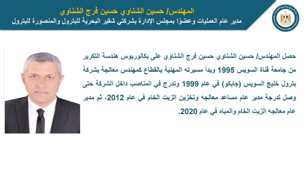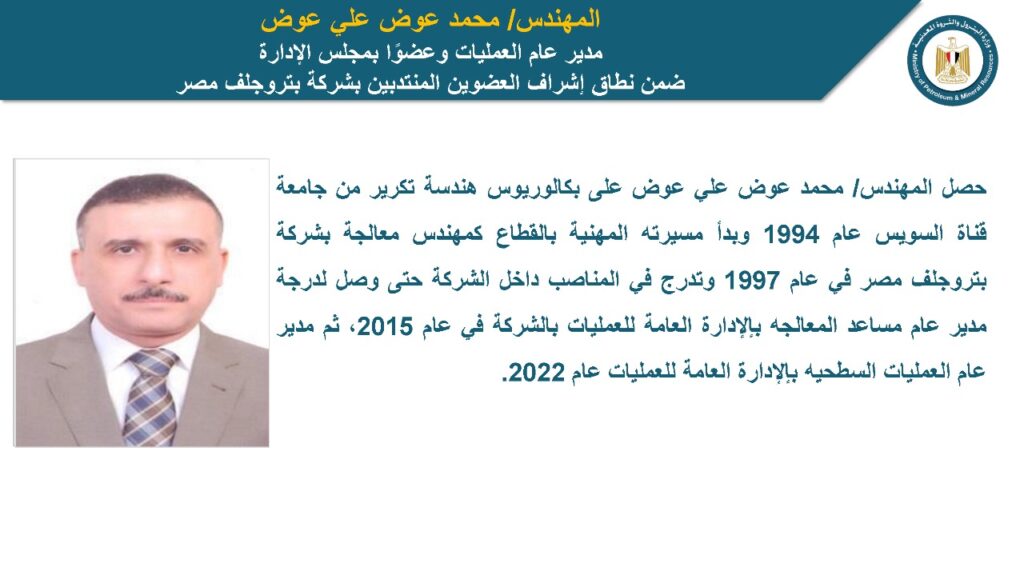 أما محمد عوض، والذي عُين مديرًا عامًا لشركة “بتروجلف”، فهو أحد أبناء الشركة، وتربى على يد أساتذة منهم حازم حافظ، رئيس “الوسطاني”، وآخرين خوفًا من النسيان، وساهم بالطبع مع زملائه في زيادة الإنتاج.