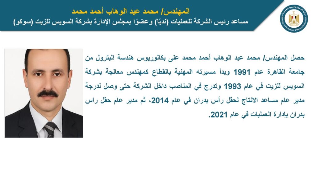 ومحمد عبد الوهاب، مساعد للعمليات بالسويس للزيت، وأحد أبناء الشركة، الذي عاش في جلبابها، وعاصر قيادات عظيمة، والشركة في أشد الاحتياج لأحد أبنائها، ولمساعدة المهندس الخلوق محمد سمير، رئيس الشركة، بعد زيادة الإنتاج.