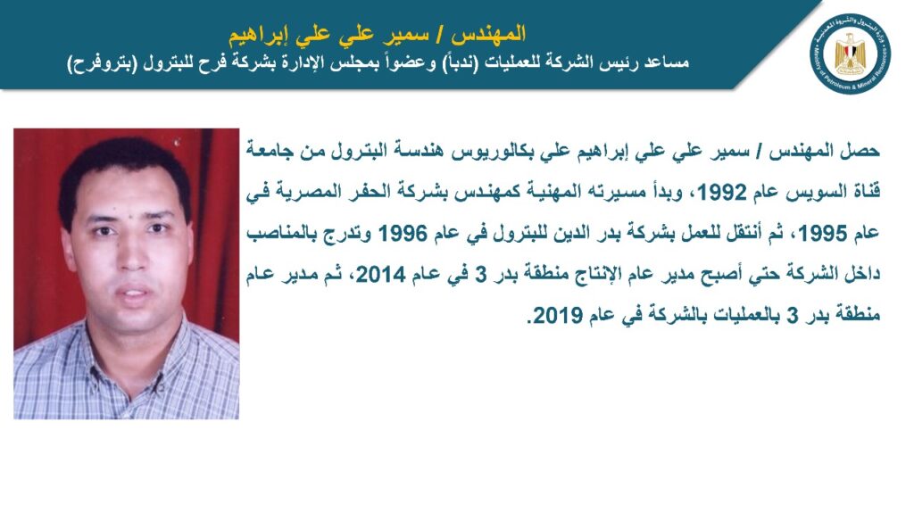 وسمير إبراهيم ابن “الحفر المصرية”، الشركة الرائدة في الحفر، ونُقل لبدر الدين وتولى الإنتاج بها، ويُعتبر خريج مدرستين: “الحفر” التي أثقلته، ثم “بدر الدين”، وهما شركتان عريقتان، وتولى مساعدًا للعمليات بـ”بتروفرح”.