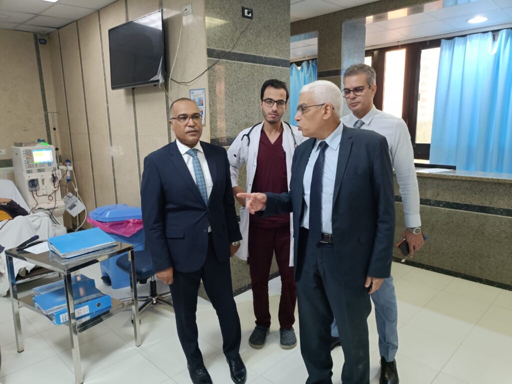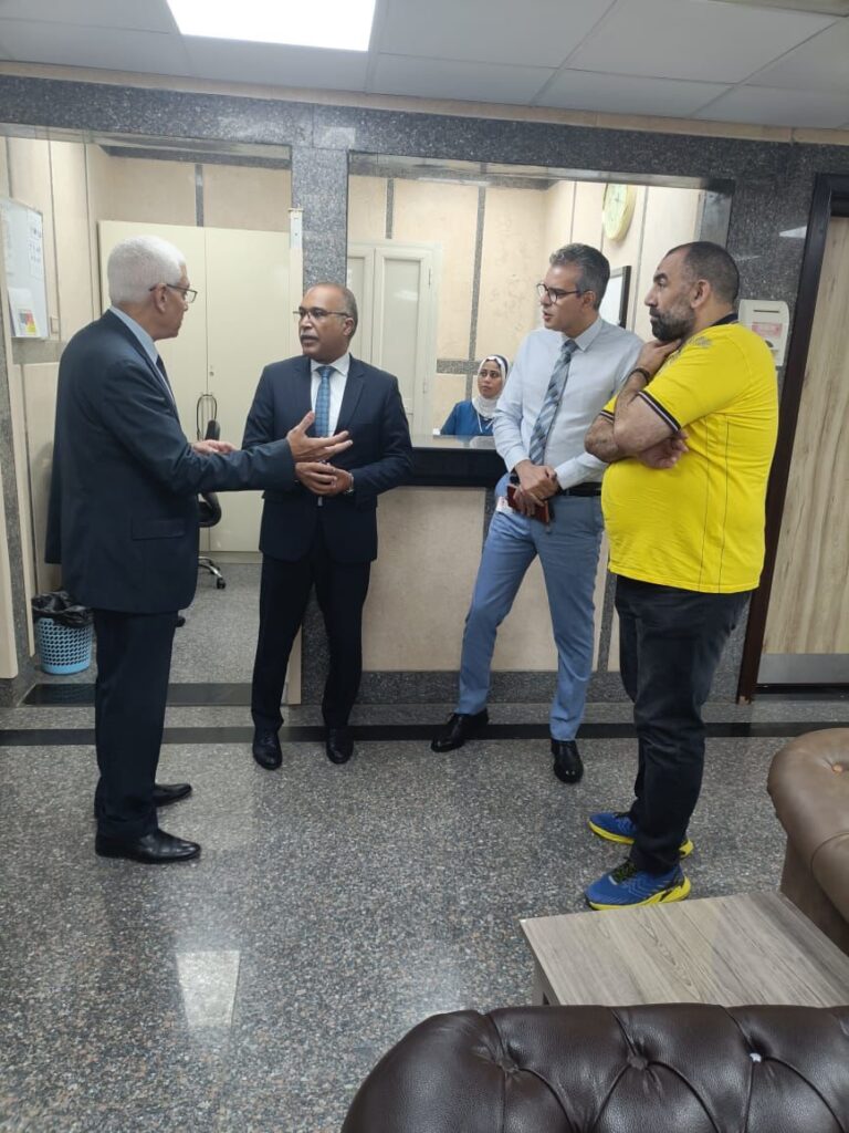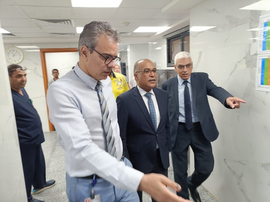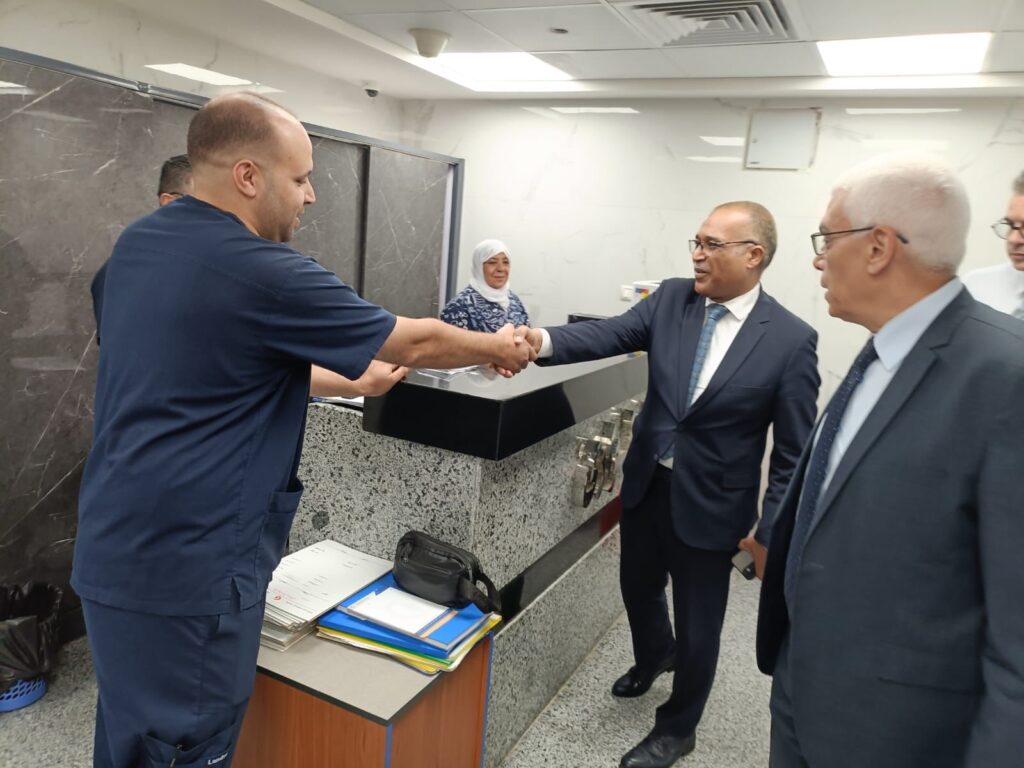 وشملت الجولة أقسام العمليات، والغسيل الكلوي، والأشعة، والصيدلة، والمطبخ، إضافة إلى الأدوار الداخلية والوحدات الخدمية المختلفة. واستمع صابر إلى عرض تفصيلي من الأستاذ الدكتور هاني السنوسي رئيس مجلس الإدارة، والدكتور هاني هلال نائب رئيس المجلس، والدكتورة همس محمد كمال مدير عام المركز، والمحاسب أحمد الجزار رئيس نقابة المركز، حول طبيعة العمل والآليات المتبعة لضمان تقديم خدمة طبية متكاملة.