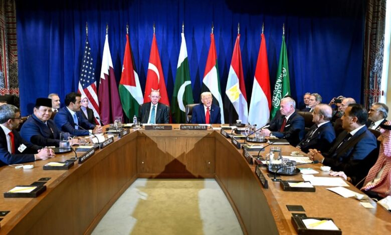 انعقدت قمة متعددة الأطراف بين قادة الولايات المتحدة الأمريكية وثماني دول عربية ودول أعضاء في منظمة التعاون الإسلامي، في مقر الأمم المتحدة على هامش الأسبوع رفيع المستوى للدورة الثمانين للجمعية العامة للأمم المتحدة. وقد عُقد الاجتماع بمبادرة من فخامة السيد دونالد ج. ترامب، رئيس الولايات المتحدة الأمريكية. وشارك في استضافة الاجتماع فخامة الرئيس ترامب وحضرة صاحب السمو الشيخ تميم بن حمد آل ثاني، أمير دولة قطر، بحضور صاحب الجلالة الملك عبدالله الثاني ابن الحسين، ملك المملكة الأردنية الهاشمية، وفخامة السيد رجب طيب أردوغان، رئيس جمهورية تركيا، وفخامة السيد برابوو سوبيانتو، رئيس جمهورية إندونيسيا، ومعالي السيد محمد شهباز شريف، رئيس وزراء جمهورية باكستان الإسلامية، ومعالي السيد مصطفى كمال مدبولي، رئيس وزراء جمهورية مصر العربية، وصاحب السمو الشيخ عبدالله بن زايد آل نهيان، نائب رئيس الوزراء ووزير الخارجية بدولة الإمارات العربية المتحدة، وصاحب السمو الأمير فيصل بن فرحان آل سعود، وزير خارجية المملكة العربية السعودية.