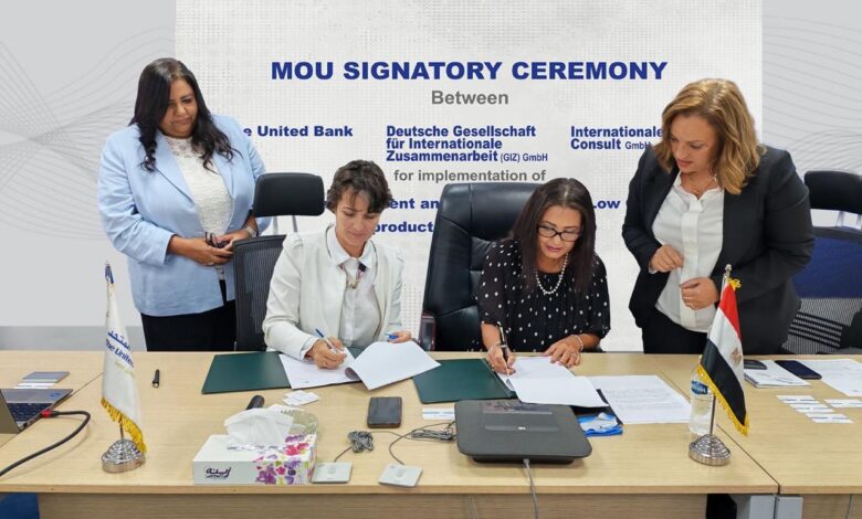 في خطوة تعكس التزامه بآليات الاقتصاد الاخضر والابتكار والريادة المصرفية، أعلن المصرف المتحد اليوم عن توقيع اتفاقية تعاون مشترك مع الوكالة الالمانية للتعاون الدولي (GIZ) وشركة IPC للاستشارات، مستهدفا تححفيز السوق لزيادة الاستثمارات الموجهه للتمويل الاخضر بما يعزز الاستراتيجية الوطنية للنمو المتكامل وفقا لرؤية مصر 2030.