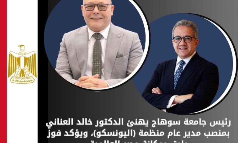 رئيس جامعة سوهاج يهنئ الدكتور خالد العناني بمنصب مدير عام منظمة (اليونسكو)، ويؤكد فوز يليق بمكانة مصر العالمية
