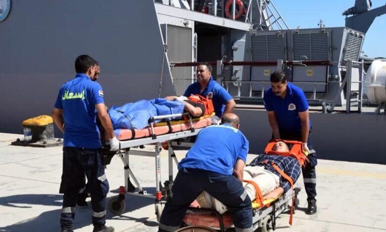 مركز البحث والإنقاذ بوزارة الدفاع ينفذ التجربة ” مصر – 11 ” لمحاكاة إنقاذ ركاب سفينة بعد إصطدامها بسفينة حاويات قبالة سواحل مدينة بورسعيد