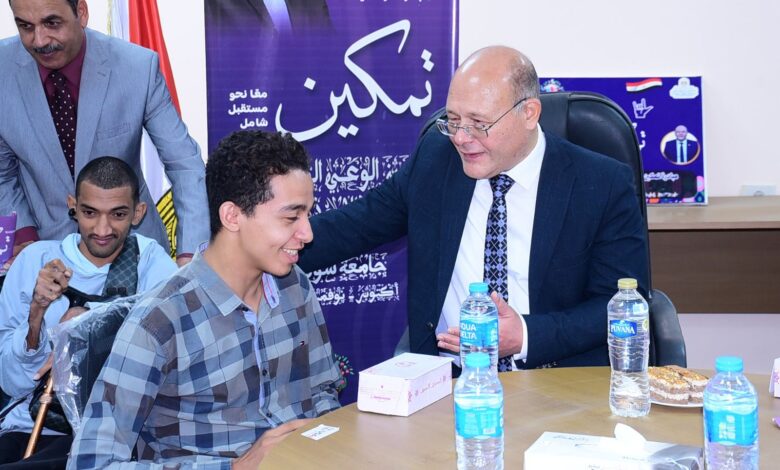 في حوار مع القلب..رئيس جامعة سوهاج يلتقي طلابه ذوي الإعاقة ويشاركهم وجبة الغذاء ضمن فاعليات مبادره تمكين