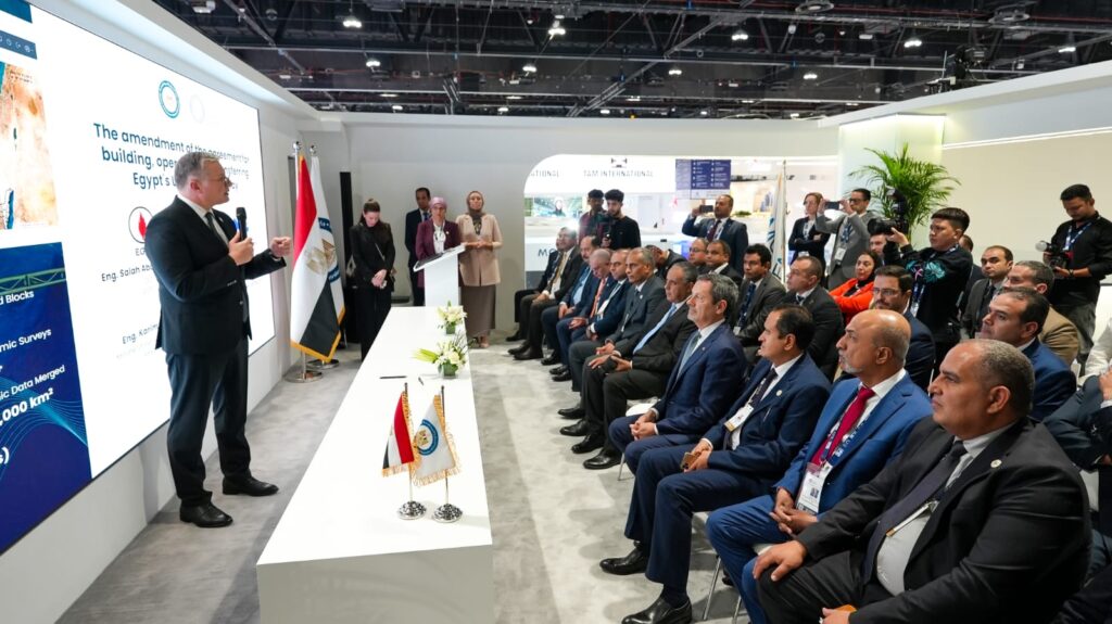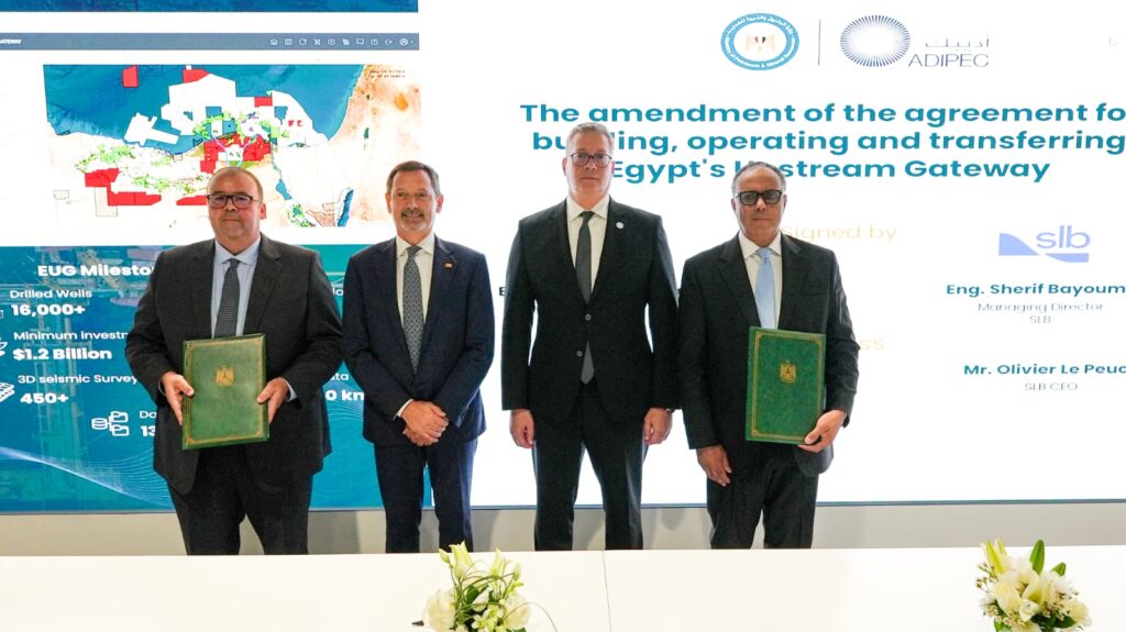 خلال مشاركته في مؤتمر ومعرض أديبك 2025 بالعاصمة الإماراتية أبوظبي، شهد المهندس كريم بدوي وزير البترول والثروة المعدنية، وبحضور أوليفييه لو بوش الرئيس التنفيذي لشركة SLB (شلمبرجير) العالمية وبيتر وايتنج نائب رئيس شركة فيريدين، توقيع اتفاقيتين للتعاون في تطبيق أحدث تقنيات المسح الاستكشافي المتقدم لموارد الغاز بشرق المتوسط، إلى جانب تطوير المنصة الرقمية للاستثمار في البحث والاستكشاف والإنتاج EUG، بما يسهم في تسويق الفرص الاستثمارية وجذب المزيد من الاستثمارات.