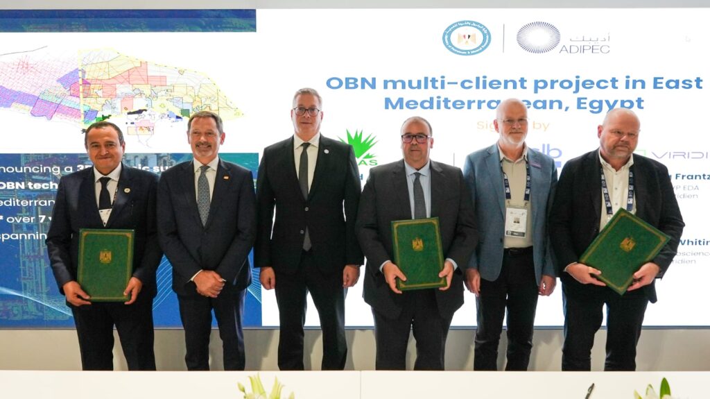 وشهد الوزير توقيع اتفاقية تنفيذ مشروع للمسح السيزمي المتطور بتقنية (OBN) في منطقة شرق البحر المتوسط على مساحة 95 ألف كيلومتر مربع، باستخدام أحدث التكنولوجيات للمسح والاستكشاف، وذلك بين الشركة المصرية القابضة للغازات الطبيعية “إيجاس” وتحالف شركتي SLB (شلمبرجير) وفيريدين، والذي تم ترسية المشروع عليه بعد فوزه في المناقصة التي طرحتها شركة إيجاس.