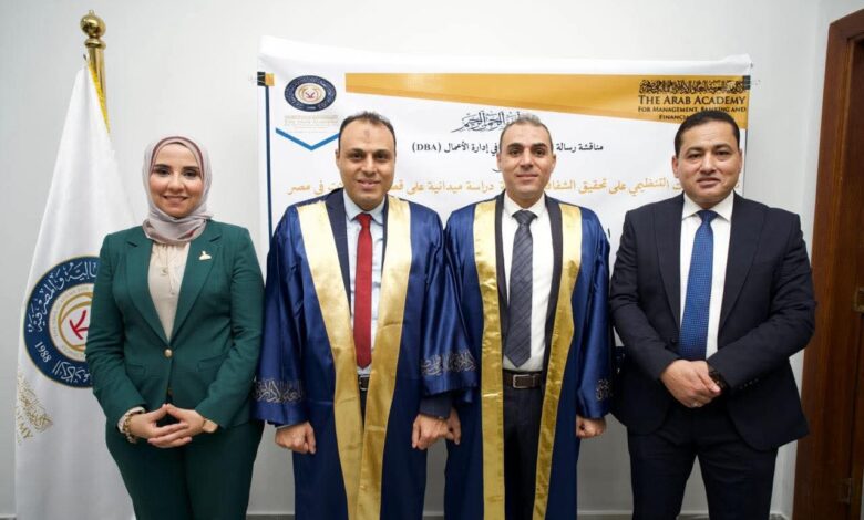 وضمّت لجنة المناقشة نخبة من أساتذة وخبراء إدارة الأعمال، برئاسة الأستاذ الدكتور أشرف عبد الرحمن الشيمي، أستاذ إدارة الأعمال بالكلية، وعضوية كل من الأستاذة الدكتورة هبة أحمد فراج، أستاذة مساعدة ومشرفة على الرسالتين.