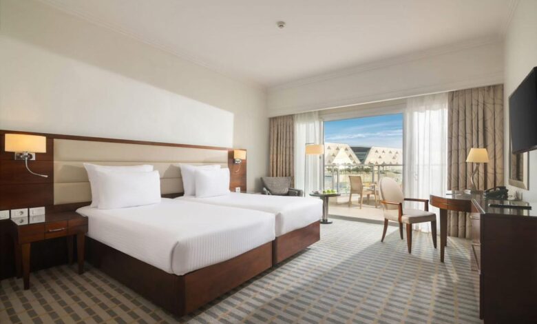 ويضم الفندق، المصنف 5 نجوم، عدد كبير من الغرف والأجنحة الفندقية، ومجموعة من المطاعم والكافيهات، وحمامات سباحة، وقاعات مخصصة للاجتماعات والفعاليات، بما يجعله وجهة مثالية للإقامة والترفيه وتنظيم المناسبات.