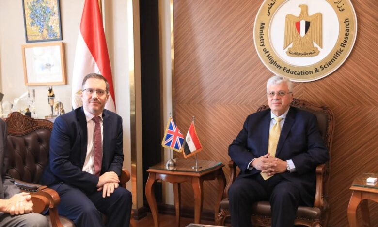 وزير التعليم العالي يلتقي سفير المملكة المتحدة بالقاهرة لبحث التوسع في الفروع الدولية وتعزيز التعاون في التعليم التكنولوجي