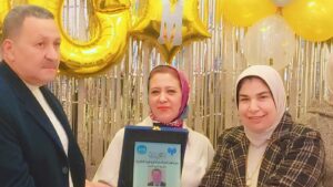 كما قدمة اللجنة النقابية وجميع الزملاء بأسمى آيات التهاني والتبريكات أجمل اللحظات التي تُتوج فيها مسيرة العطاء ”إن تكريم المخلصين هو ترسيخ لقيم الوفاء التي تجمعنا. كعائلة واحدة في قطاع الاتصالات.”