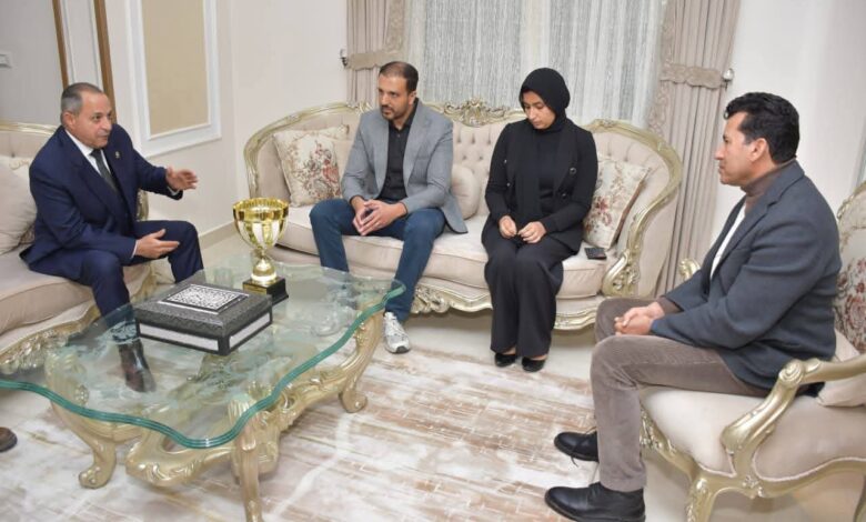 وزير الشباب والرياضة ومحافظ بورسعيد يقدمان واجب العزاء في وفاة السباح يوسف محمد بمنزله ببورسعيد
