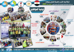 وفى مجال نشر الوعى المائي تم تنفيذ 1650 نشاط توعوى يستهدف اكثر من 3 مليون مواطن من خلال تنفيذ ندوات توعوية لرجال الدين الإسلامي والمسيحي وقادة الراي بالقرى وكذلك تنفيذ قوافل مائية للمواطنين في جميع قرى ونجوع المحافظة ورحلات تعريفية لمحطات مياه الشرب والصرف الصحي وأنشطة توعوية لطلاب المدارس واستطلاعات راي ميدانية والكترونية للمواطنين حول خدمات مياه الشرب والصرف الصحي وورش سباكة للسيدات لتعليمهم كيفية إصلاح الأدوات المنزلية وحملات لتوعية المواطنين حيث تشمل هذه الانشطة عدة رسائل اتصالية منها أهمية ترشيد استهلاك المياه والحفاظ على شبكات الصرف الصحي واضرار القيسونات على الخزان الجوفي ومخاطر الطلمبات الحبشية والفلاتر على الصحة العامة والمشروعات القومية التى تنفذها الدولة وعلى راسها مشروعات المبادرة الرئاسية لتطوير الريف المصرى حياة كريمة وكذلك التوعية بأهمية استخدام مرشدات المياه لتقليل المياه المهدرة وأهمية دفع الفواتير لاستمرار قيام الشركة في تأدية مهامها.