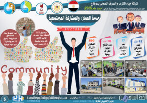 وفى مجال المشاركة المجتمعية تم توصيل 4302 وصلة مياه شرب وصرف صحى بالتعاون مع الجمعيات الخيرية بقيمة 25.6 مليون جنيه وتنفيذ خطوط مياه باطوال 54 كيلو متر ودق 7 ابار مياه جوفية.