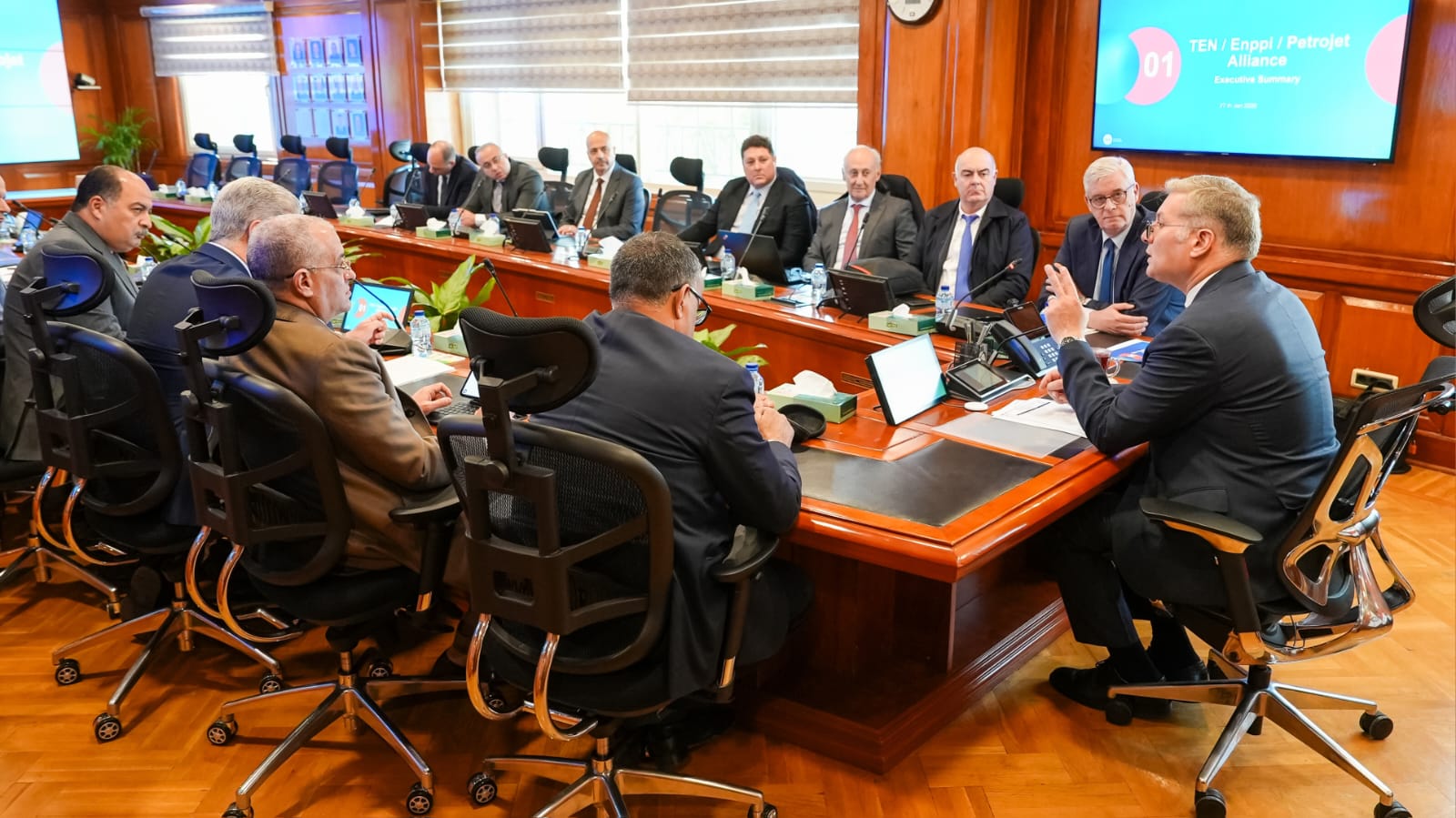 من جانبه، استعرض ماركو فيلا ركائز التحالف التي تشمل نقل التكنولوجيا المتقدمة، وتحقيق التكامل عبر استغلال الأصول المحلية لشركتي “إنبي” و”بتروجت”، وتوفير حلول تمويلية من مؤسسات الائتمان الدولية.
