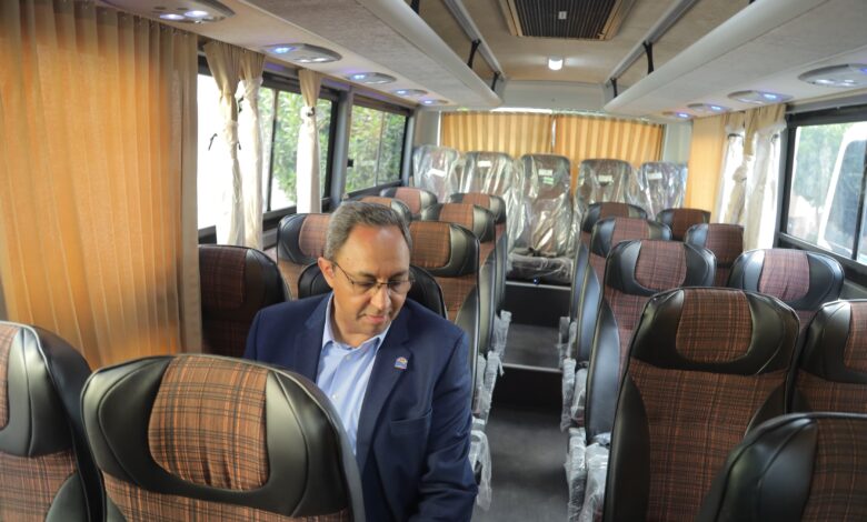 ولفت عبدالحليم، إلى أن الأتوبيسات الجديدة سعة ٢٩ مقعدًا، ومزودة بأجهزة اتصال حديثة وشاشات عرض وخدمة انترنت، بما يضمن مستوى أعلى من الأمان والراحة للركاب، كما تم وضع التعريفة للاتوبيسات، وسوف تعمل طوال اليوم ما بين المواقف وخط سير الج، لتخفيف العبء عن كاهل الطلاب، مشيرًا إلى أن الافتتاح الفعلي للخدمة بدأ اليوم مع شركة مستر باص، التي دفعت بـ٣ أتوبيسات جاهزة من إجمالي ٦ أتوبيسات، على أن يتم الدفع بباقي الأتوبيسات تباعًا خلال الفترة المقبلة، كما سوف يتم توفير اتوبيس سعة 50 راكب ينزل وقت الذروة لمنع التكدس والازدحام.