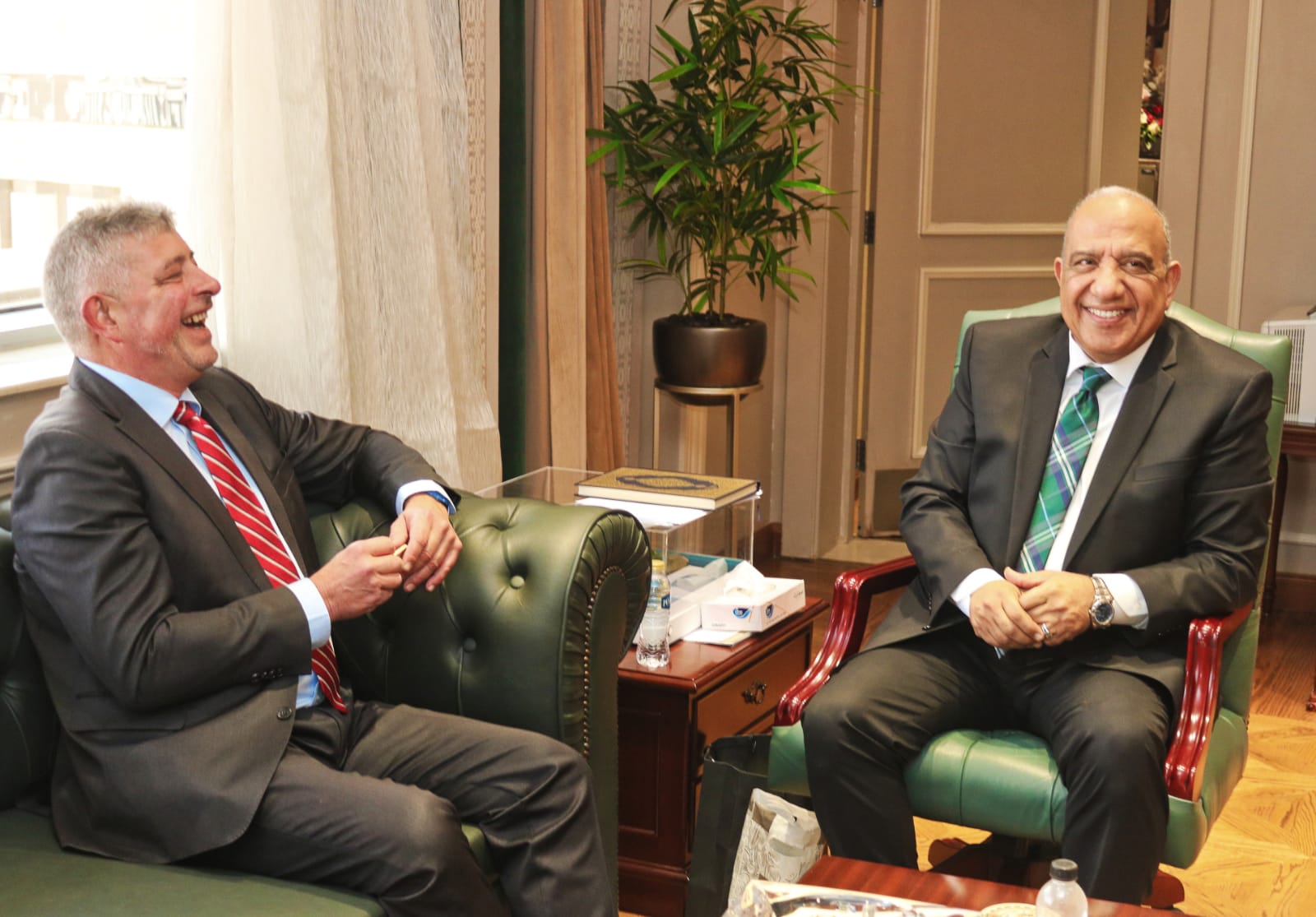 فى إطار توجه الدولة نحو تعظيم دور الطاقات الجديدة والمتجددة فى مزيج الطاقة، والاستراتيجية الوطنية للطاقة، وبرنامج عمل قطاع الكهرباء للتحول الطاقى، استقبل الدكتور محمود عصمت وزير الكهرباء والطاقة المتجددة، السفير لارس بو مولر سفير الدانمارك لدى القاهرة، بمقر الوزارة بالعاصمة الجديدة، لبحث سبل دعم وتعزيز فرص التعاون والعمل المشترك والاستفادة من التكنولوجيات الجديدة فى مجالات الكهرباء وجذب المزيد من الاستثمارات فى مشروعات الطاقات الجديدة.