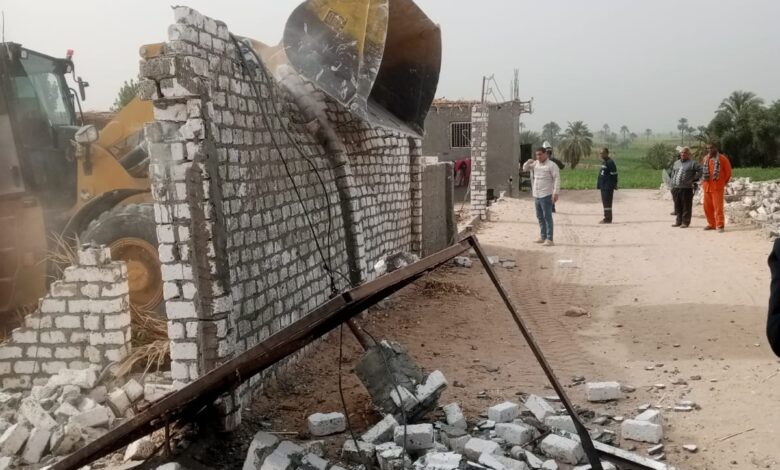 إزالة 40 حالة تعدي على الأراضي الزراعية وأملاك الدولة وأعمدة وسقف مخالف بنجع حمادي