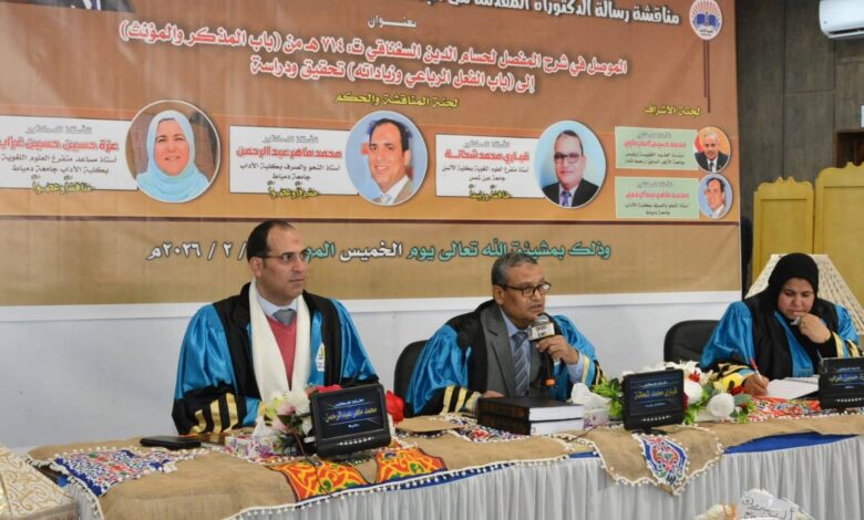 دمياط تشهد حدثا أكاديميا استثنائيا.. مفتي الجمهورية ورئيس الجامعة يشهدان مناقشة دكتوراه مبهرة