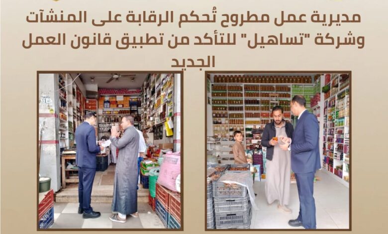 مديرية عمل مطروح تُحكم الرقابة على المنشآت وشركة “تساهيل” للتأكد من تطبيق قانون العمل الجديد