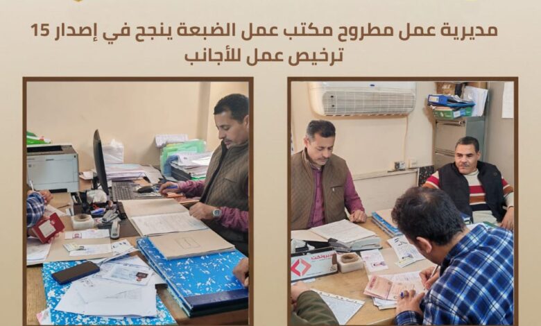 مديرية عمل مطروح: مكتب عمل الضبعة ينجح في إصدار 15 ترخيص عمل للأجانب