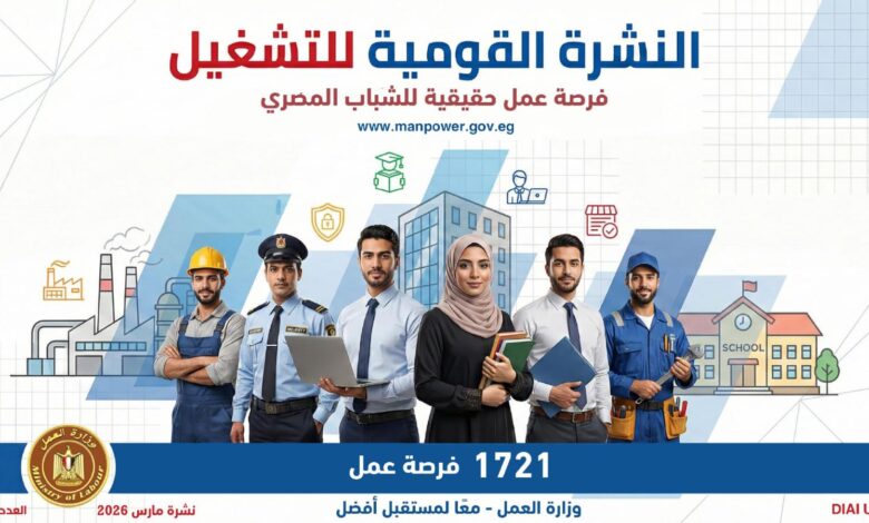 القطاع الخاص شريك في فتح أبواب رزق جديدة … فرص واعدة تنتظر الشباب في 8 محافظات : 1721 وظيفة في 33 شركة خاصة عبر نشرة التوظيف الأسبوعية لوزارة العمل