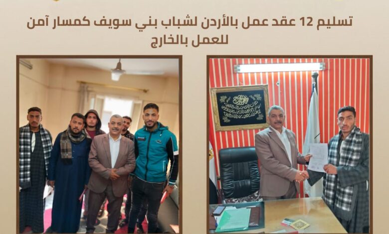 تسليم 12 عقد عمل بالأردن لشباب بني سويف كمسار آمن للعمل بالخارج
