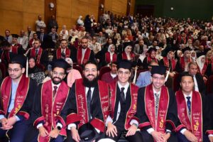وفي كلمته، اكد الدكتور محمد نصر الدين عميد كلية الطب البشري أن خريجي كلية الطب هم سفراء للجامعة في جميع مواقع العمل، ويحملون رسالة إنسانية عظيمة تقوم على الرحمة والعلم والانضباط، موجهًا الشكر لإدارة الجامعة وأعضاء هيئة التدريس وأولياء الأمور على دعمهم المستمر، داعيًا الخريجين إلى الاستمرار في التعلم والتطوير الذاتي والالتزام بأخلاقيات المهنة، بما يساهم في الارتقاء بالمنظومة الصحية وخدمة المجتمع.