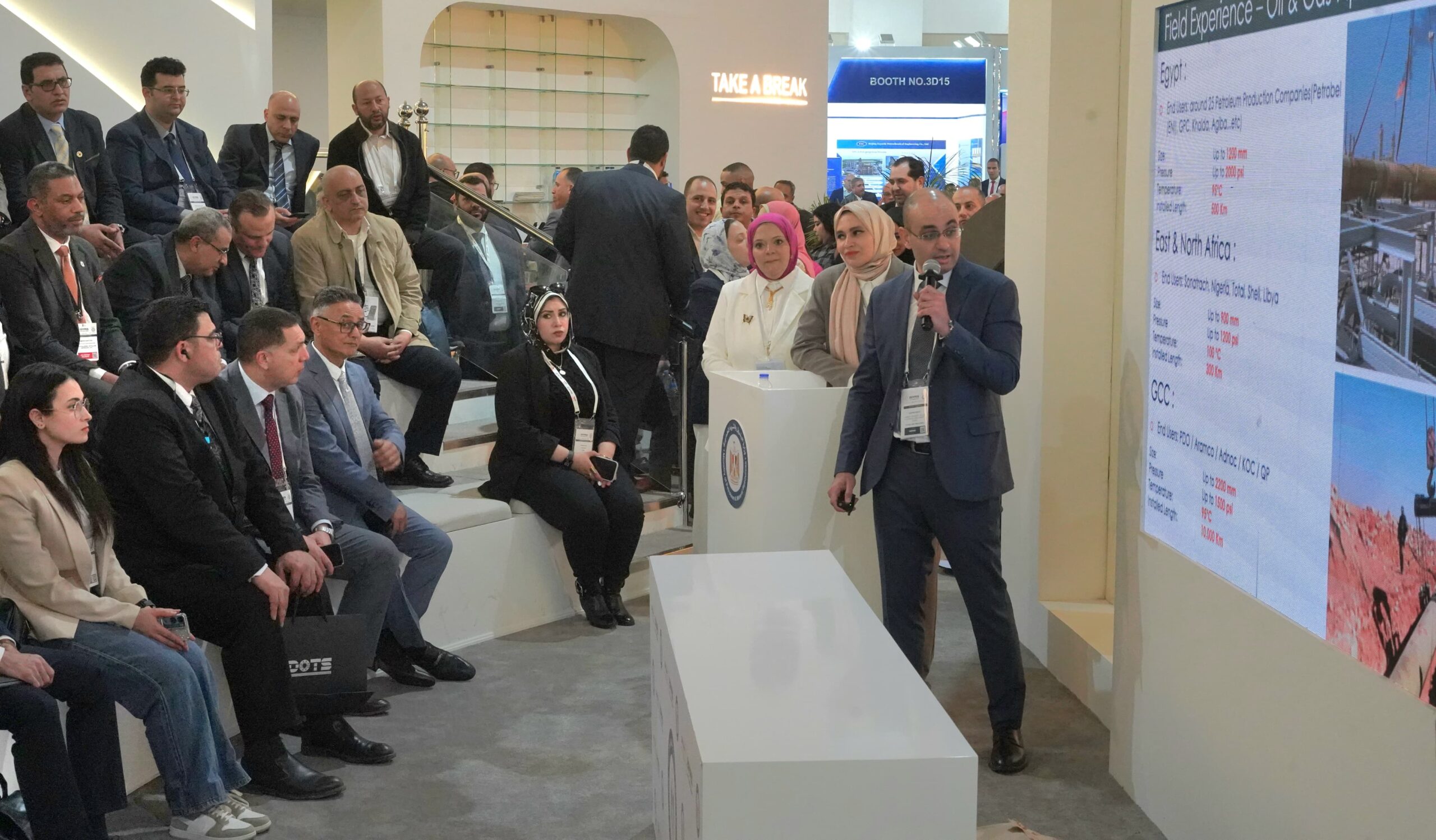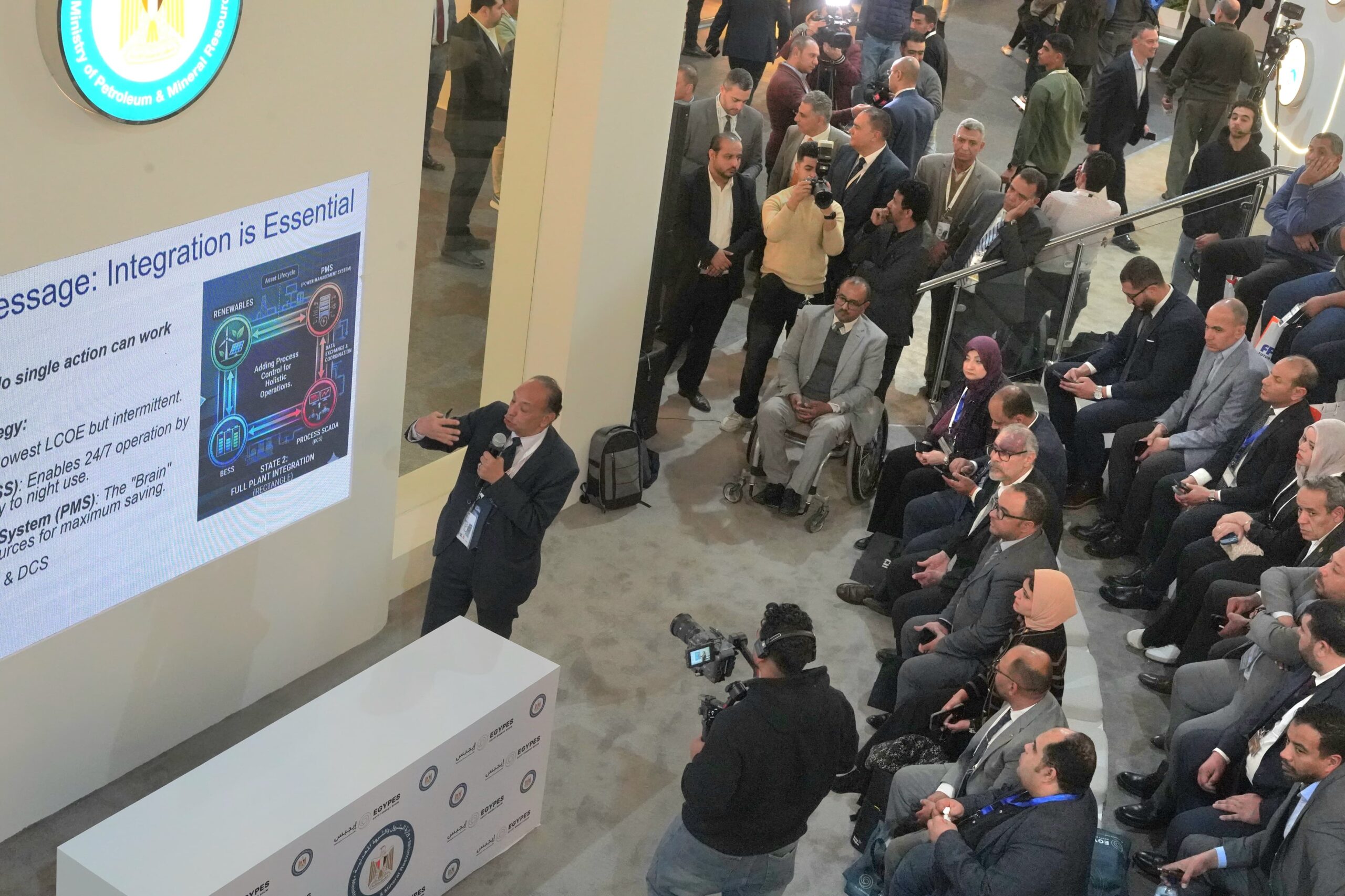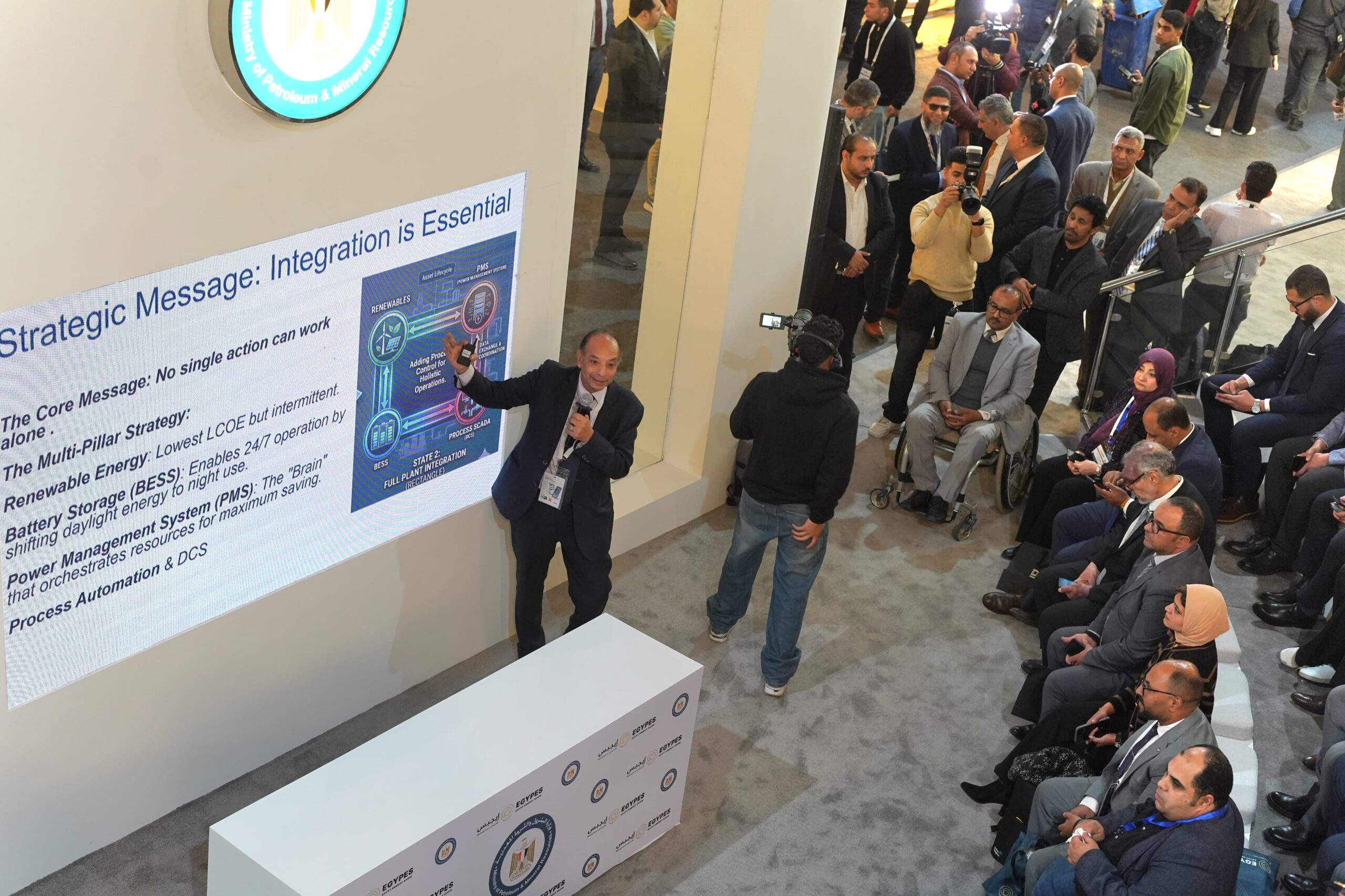 شهد جناح وزارة البترول والثروة المعدنية بمعرض مصر الدولى للطاقة إيجبس 2026 والذى يضم الهيئات والشركات القابضة ، تقديم فريق عمل الهيئة المصرية العامة للبترول عروض لقصص نجاح تقليل التكلفة ونموذج التكامل فى عمليات الإنتاج .