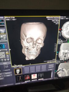 وصل المريض إلى قسم الاستقبال بعد تعرضه لحادث سير عنيف أدى إلى كسور متعددة وتهتك بعظام الوجه والفكين، وعلى الفور خضع للإسعافات الأولية والفحوصات والأشعات اللازمة، قبل أن يتم تجهيز الحالة لدخول غرفة العمليات.