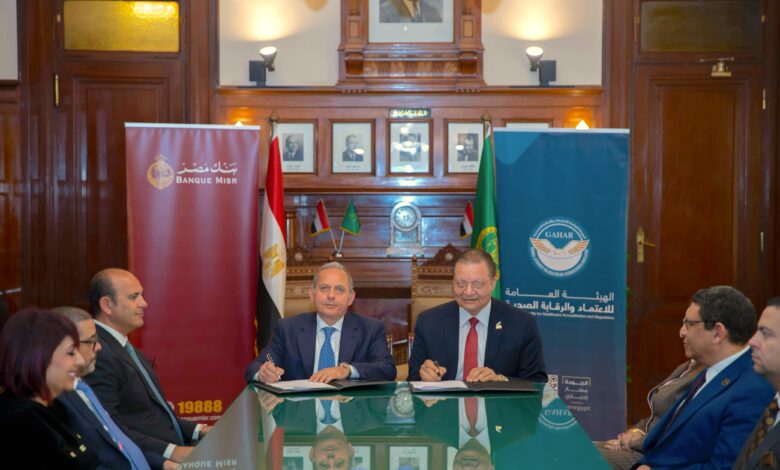 بنك مصر يوقع بروتوكول تعاون مع الهيئة العامة للاعتماد والرقابة الصحية لتوفير حلول تمويلية للمنشآت الطبية دعمًا لمنظومة التأمين الصحي الشامل