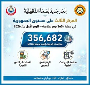 من أجل سلامتك.. الدقهلية تصل لـ356 ألف مواطن وتحقق إنجازاً جمهورياً الدقهلية في الصدارة الصحية.. المركز الثالث جمهورياً في «365 يوم سلامة»