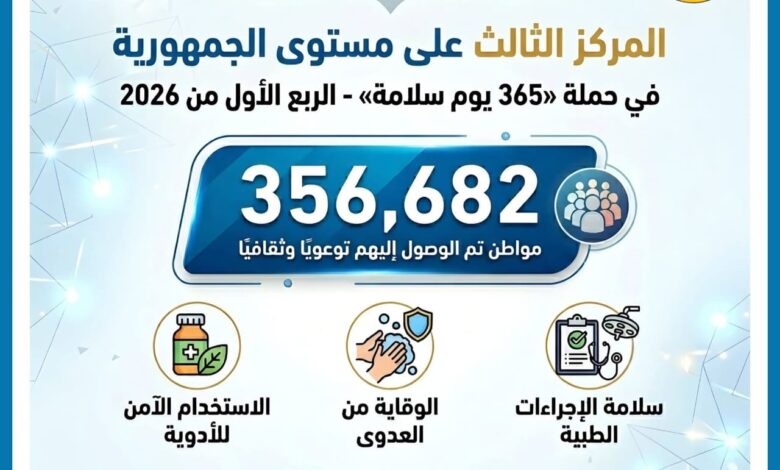 واختتم تصريحه بالتأكيد على استمرار جهود مديرية الصحة بالدقهلية في دعم وتنفيذ حملة «365 يوم سلامة»، والعمل على زيادة معدلات التوعية خلال الفترة المقبلة، بما يساهم في ترسيخ ثقافة سلامة المريض وتحسين جودة الخدمات الصحية المقدمة داخل المحافظة.