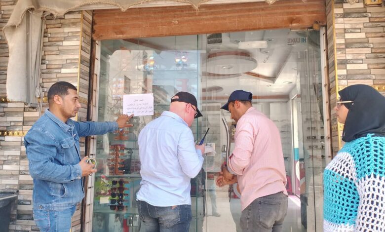 غلق وتشميع بعض المنشات والمحلات التجارية المخالفة و بدون ترخيص بالوحدة المحلية بمركز الزرقا