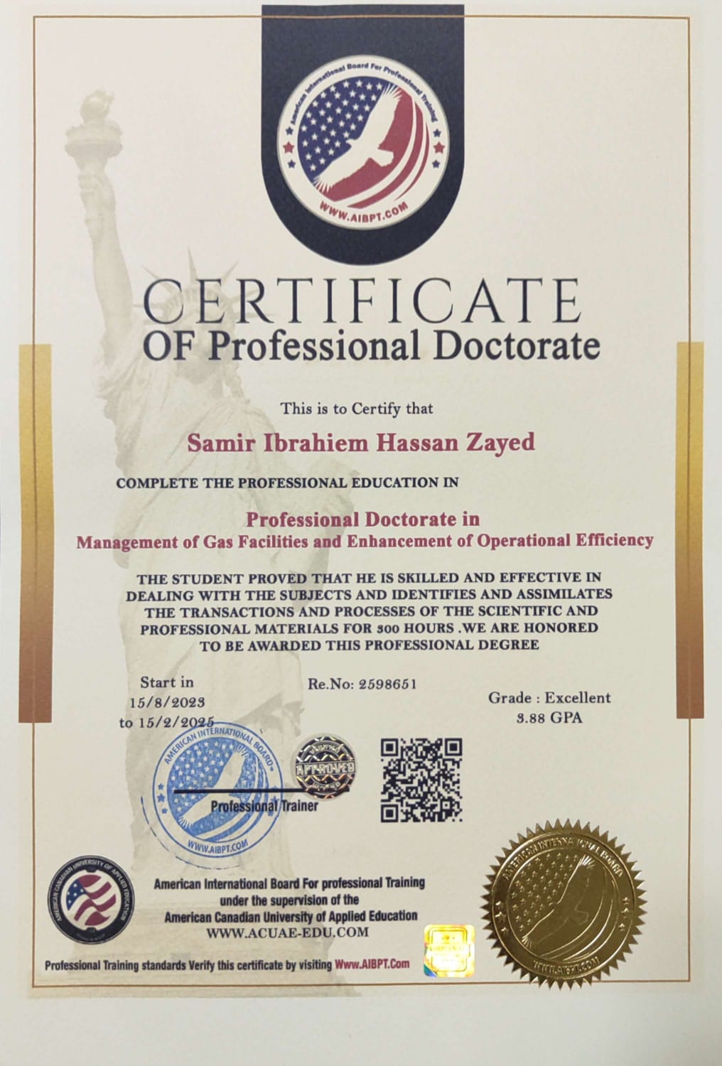 حصول المهندس سميد زايد على الدكتوراه المهنية في إدارة منشآت الغاز وتعزيز الكفاءه التشغيلية