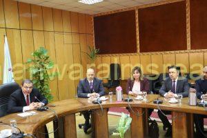 التقى وزير القوى العاملة محمد سعفان ، اليوم الخميس ، وفدا من النقابة العاملة للعاملين بالبترول والكيماويات بالمملكة الأردنية برئاسة خالد الزيود ، في إطار زيارة الوفد لمصر لتوقيع بروتوكول تعاون مشترك مع النقابة العامة للبترول في مصر برئاسة محمد جبران ، في مجال التدريب والتثقيف وتبادل الزيارات.