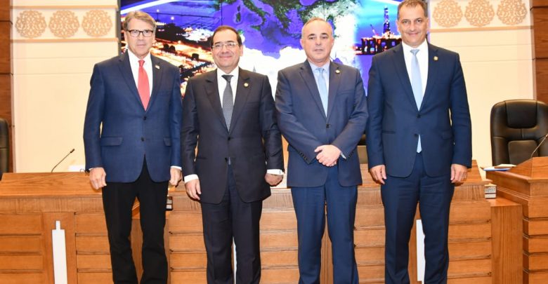 عقد وزراء البترول والطاقة بدول منتدى غاز شرق المتوسط مؤتمرا صحفيا في اعقاب الاجتماع الوزاري الثانى الذى استضافته القاهرة اليوم الخميس بمشاركة عدد من وزراء دول المتوسط ووزير الطاقة الامريكى ريك بيرى وممثلين عن الاتحاد الاوروبى وفرنسا والبنك الدولى .