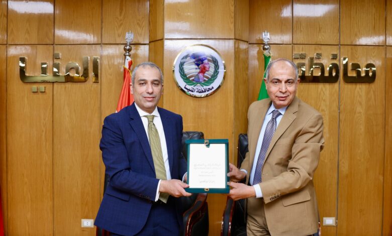 رئيس البنك الزراعي المصري ومحافظ المنيا يوقعان بروتوكول تعاون لتمويل المنتفعين بأراضي أملاك الدولة