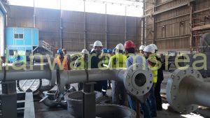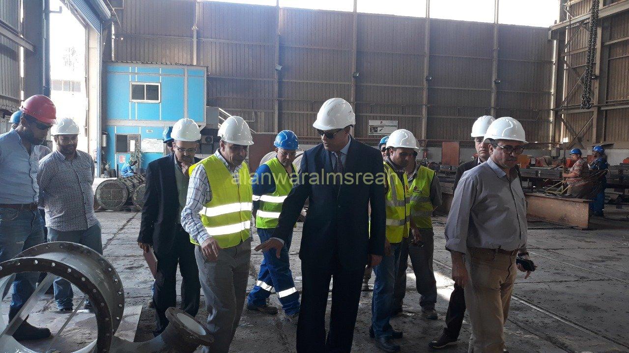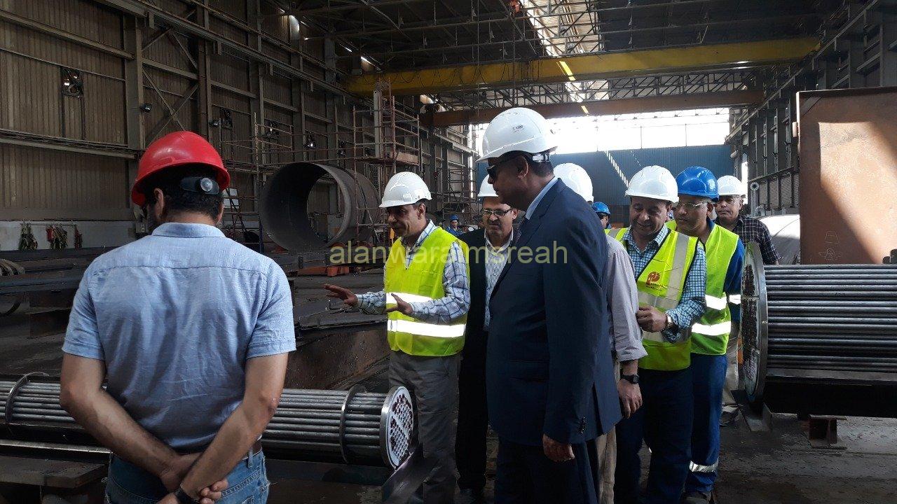 وخلال الجولة تم تعريف بمراحل التصنيع وأهم المشروعات التى يتم تنفيذها حالياً بصفة عامة ومشروع تصنيع وتوريد المبادلات الخاصة بوحدة استخلاص العطريات والتى يتم تنفيذها لصالح شركة الأسكندرية للبترول حيث تم الإيضاح أنه تم الانتهاء من أعمال التصنيع بشكل كامل ويتم حالياً إجراء الإختبارات الهيدروليكية للمبادلات.