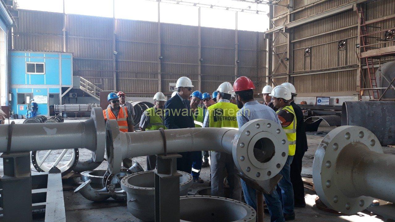 كما تم أيضاً إستعراض مراحل تقدم الأعمال فى أعمال التصنيع الخاصة بمشروع وحدة الأسفلت التابعة لشركة السويس للبترول.